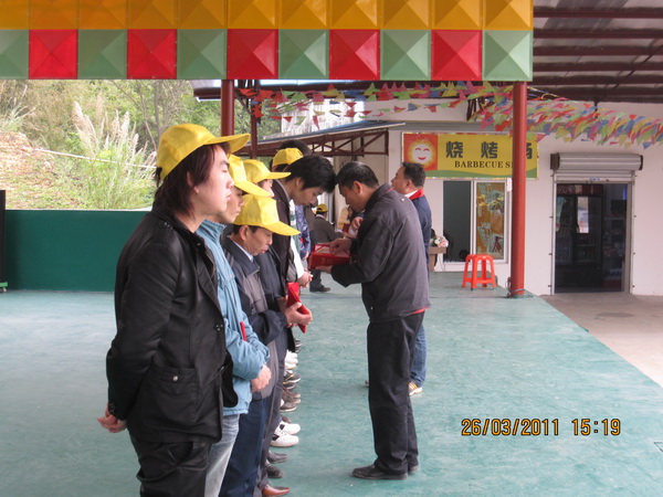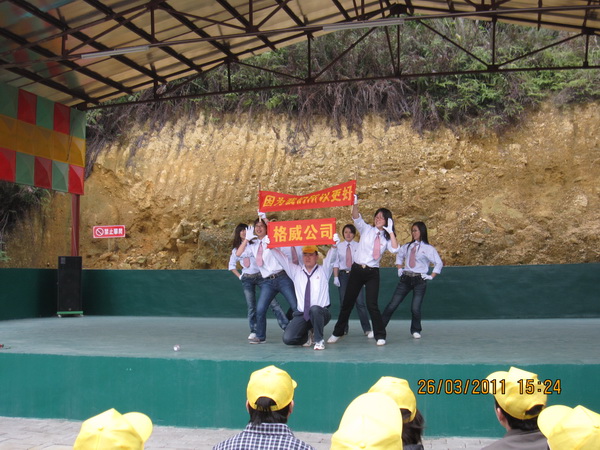 2011年3月27日,我司组织了2010年度优秀员工和QC小组成员到江门恩平泉林山庄进行了颁奖兼联谊活动,上午我们进行了CS野战、大脚八等拓展活动,下午是我们2010年度优秀员工、质量先进个人、优秀班组和优秀班组长的颁奖活动,上年度共涌现出23名优秀员工,13名质量先进个人,3个优秀班组和优秀班组长,他们用优异的表现获得了公司的肯定,公司给予他们物质和精神上的奖励。颁奖过程中穿插中公司自己组织的文娱活动,活动形式丰富多彩,有合唱、对唱、游戏、广告、小品、舞蹈等,虽然我们只有短短一周时间的准备时间,但是他们都很努力去排练,节目演出效果还不错,公司领导也积极参与到节目中。